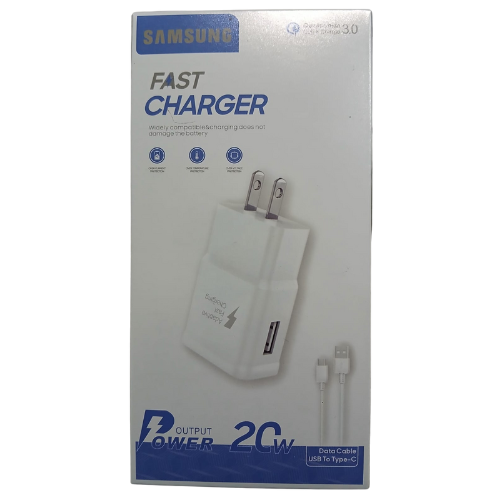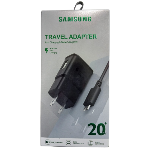 CARGADOR SAMSUNG TRAVEL ADAPTER 20W NEGRO USB-V8 CARGA RAPIDA